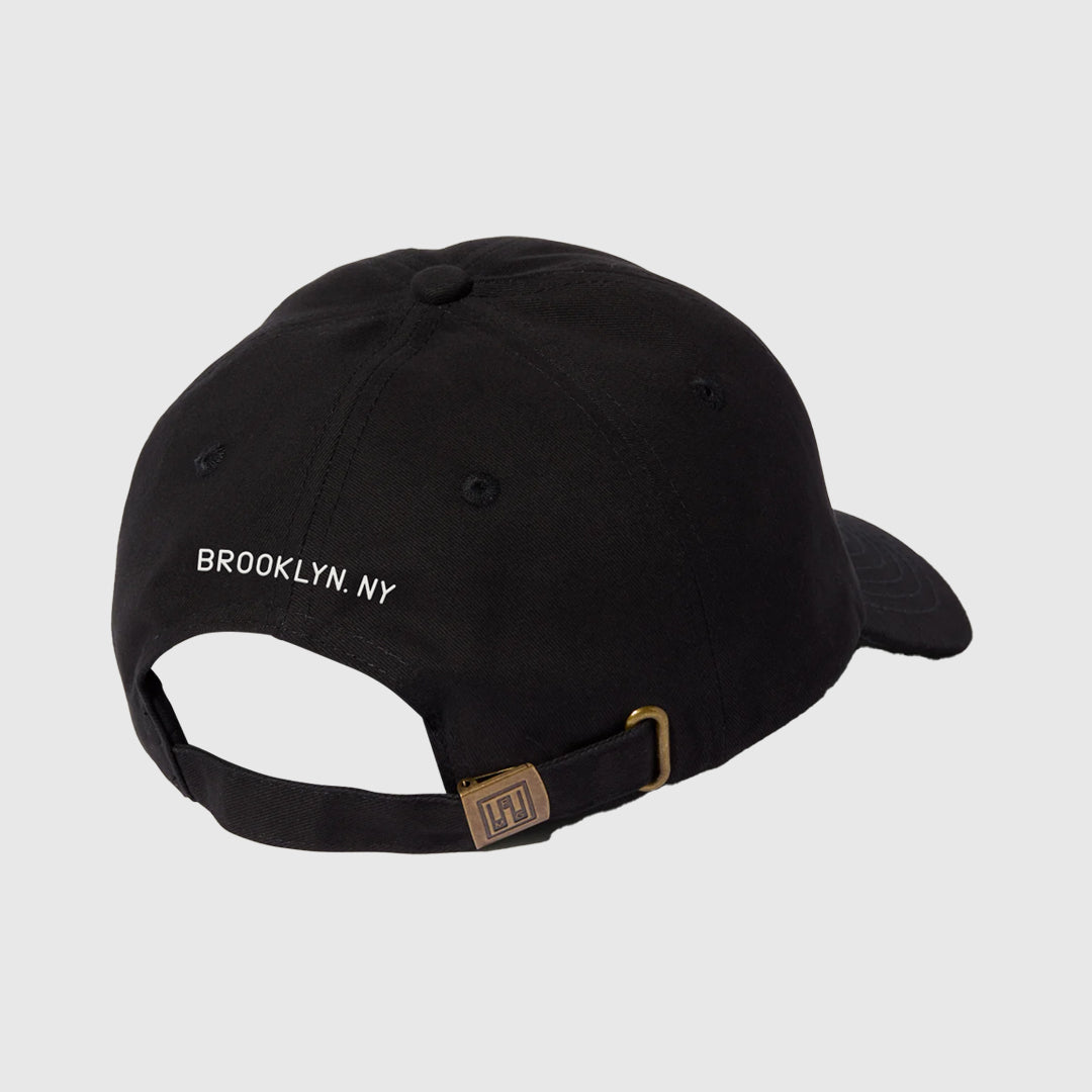 This six-panel dad hat features classic black and white colors, showcasing your support of Kings County Distillery. This hat features a laid-back fit and curved brim with an adjustable brass metal closure. Our hats are one-size-fits-all and have an adjustable, tuck-away strap with a metal adjuster. The hat is made of 100% brushed cotton fabric.