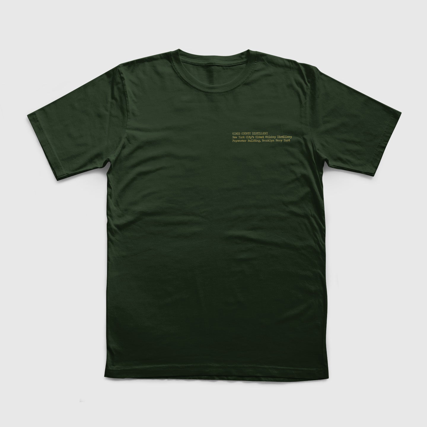 A staff favorite, this green-colored, 100% cotton soft tee features our name and location in our iconic typewriter font on the front with a copper pot still schematic on the back. Classic fit.